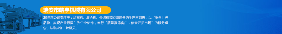 瑞安市皓宇機(jī)械有限公司是瑞安一家私營(yíng)責(zé)任有限公司,注冊(cè)資金200萬(wàn),員工40余人,是具有獨(dú)立法人地位,專業(yè)生產(chǎn)定做各種非標(biāo)準(zhǔn)涂布機(jī)、復(fù)合機(jī)、印刷機(jī)、分切機(jī)、壓膜機(jī)等機(jī)械設(shè)備的制造廠。公司的機(jī)器主要用于生產(chǎn)保護(hù)膜、膠帶、雙面膠、不干膠、相紙、油畫(huà)布、汽車(chē)防爆膜、熱轉(zhuǎn)印、燙金膜、離型膜、離型紙、軟包裝印刷、軟包裝復(fù)合、軟包裝分切等各種產(chǎn)品... [詳細(xì)]